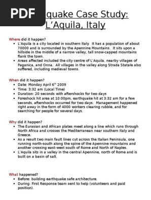 Laquila Earthquake Case Study Natural Disasters Earthquakes